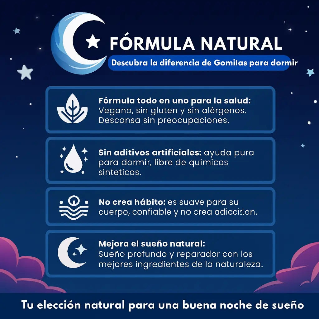 Tome 2 gomitas 30 minutos antes de acostarse y disfrute de un sueño profundo y reparador.