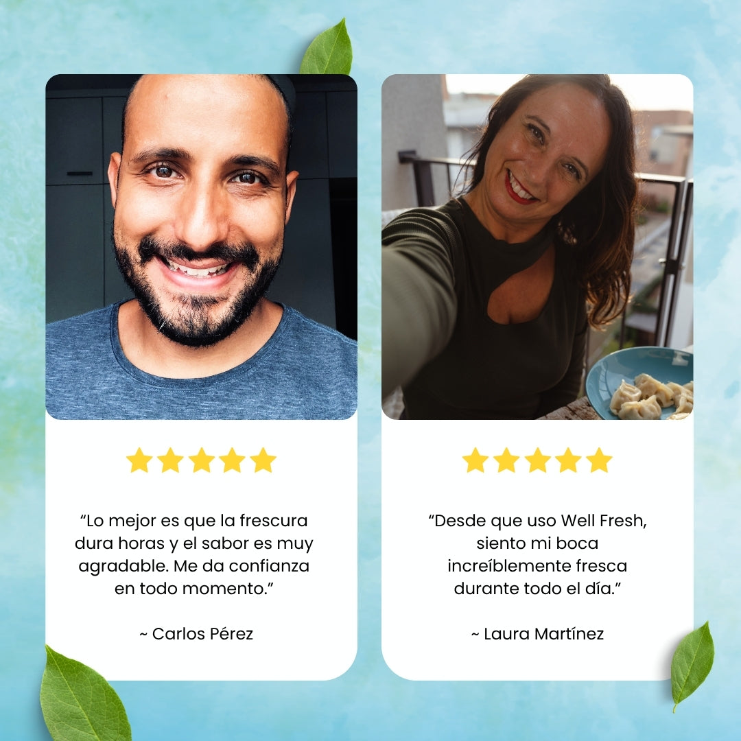 Tenía miedo de que se note mi mal aliento en el trabajo. Probé Well Fresh y en serio, es un antes y un después.